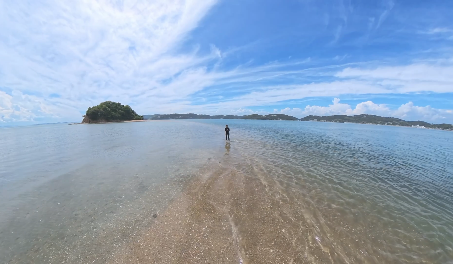 干潮のときだけ姿を現す、海を渡る砂の道。