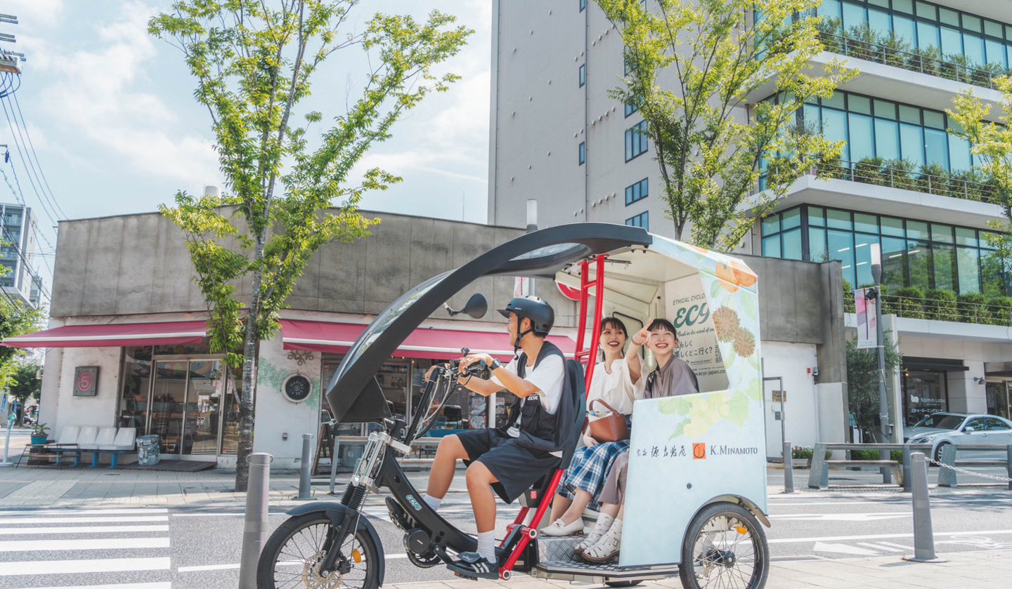 自転車タクシー「ecyc」で後楽園や城下町をのんびり巡ったり。